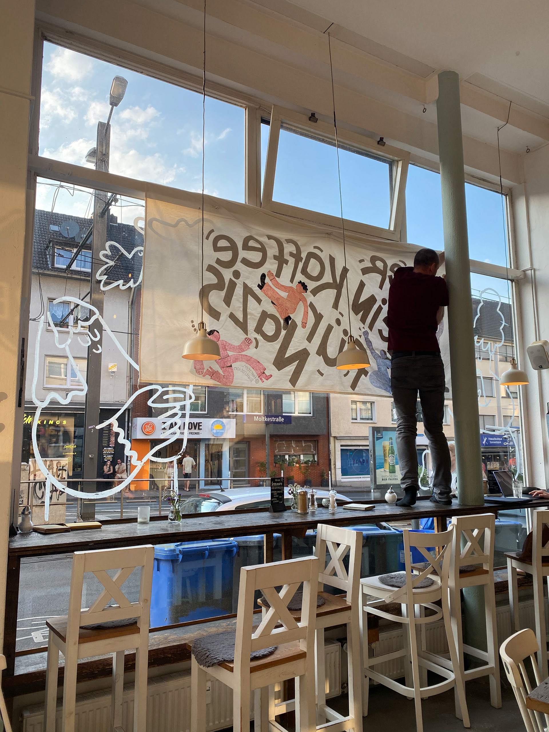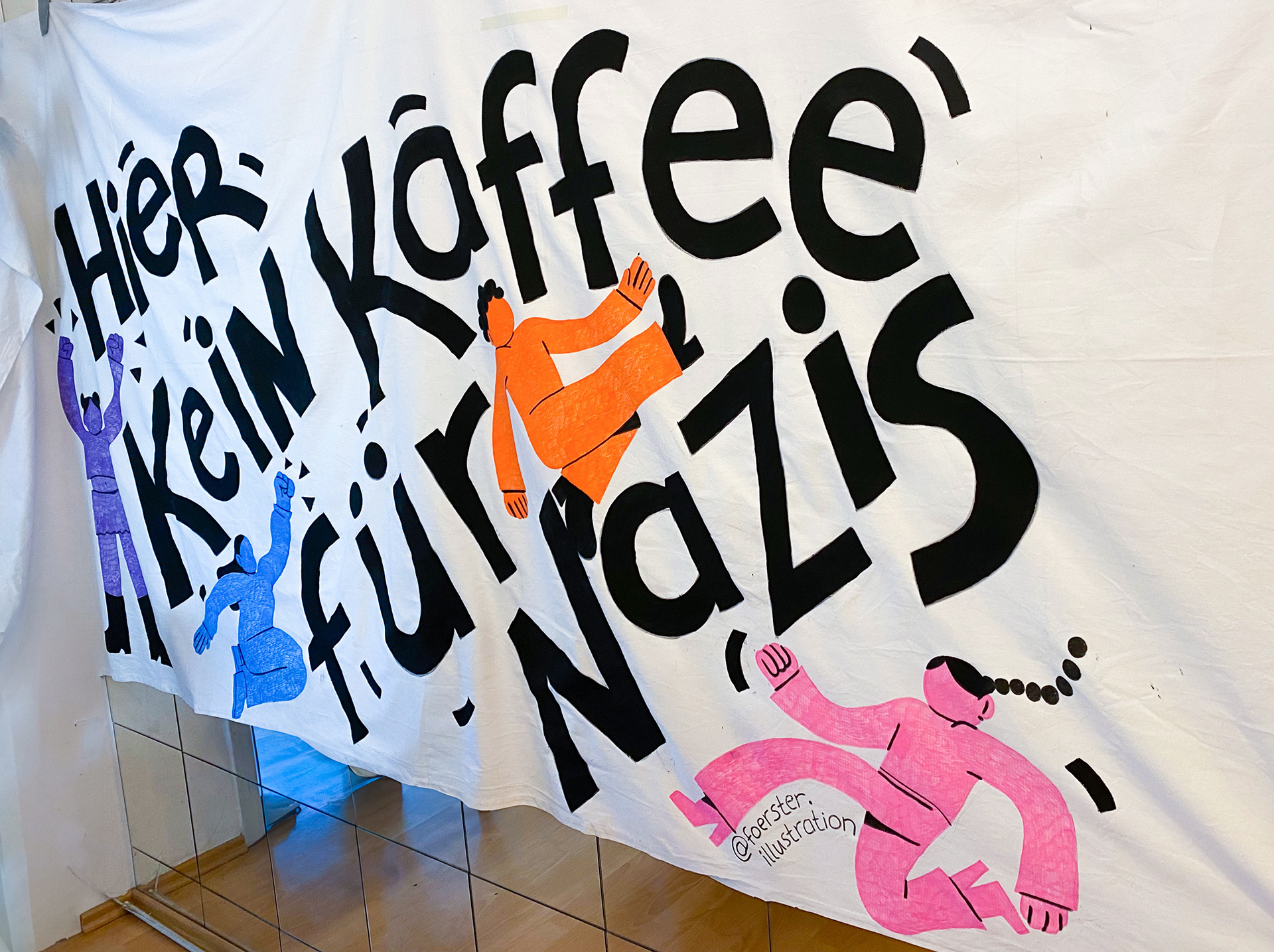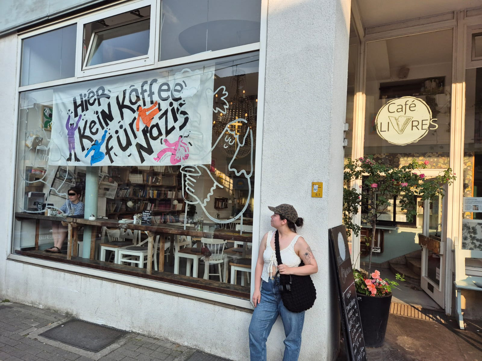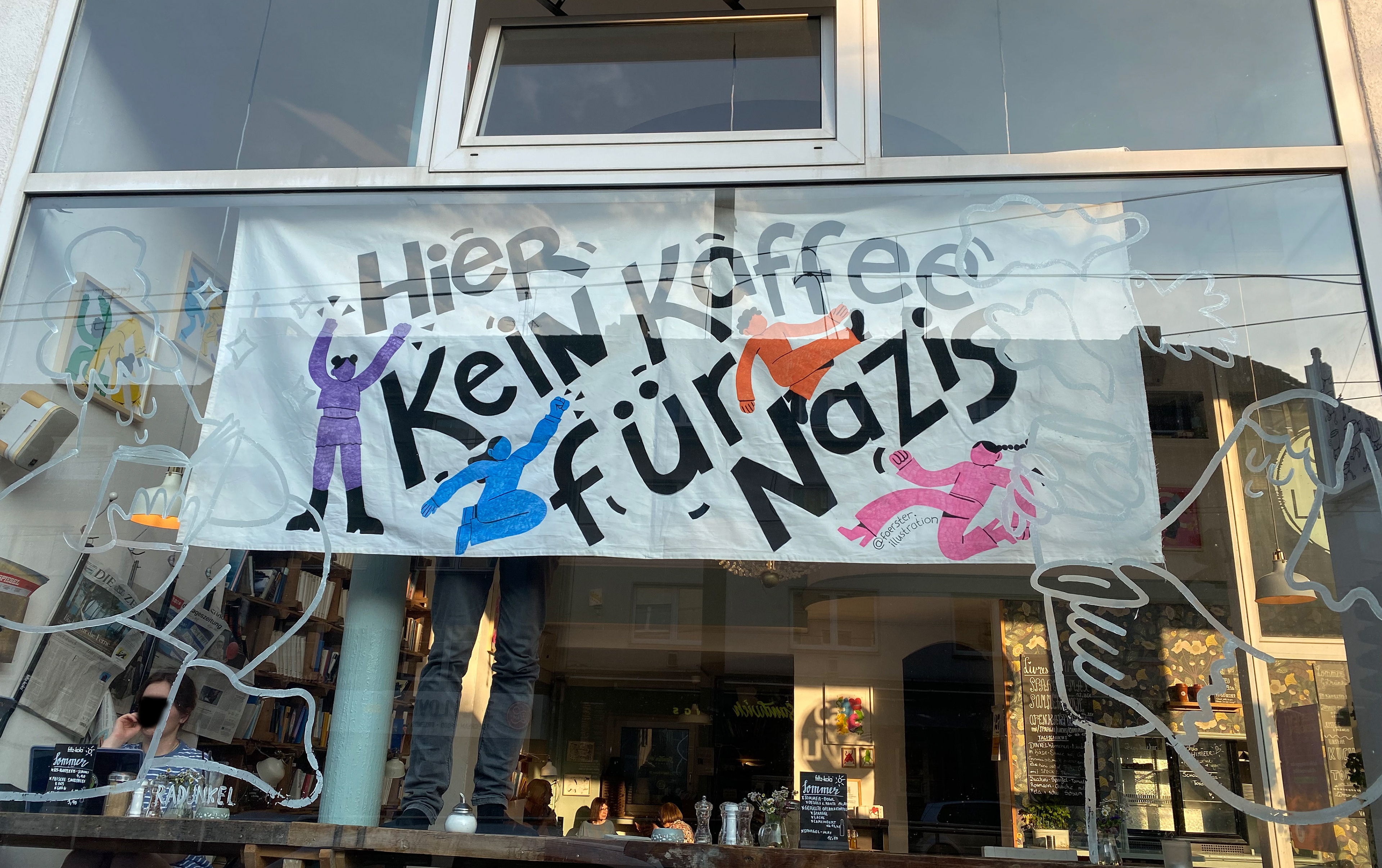 Gestaltung eines Banners für das Café Livres, anlässlich der Demonstrationen gegen die AFD und deren Parteitag in Essen 2024.