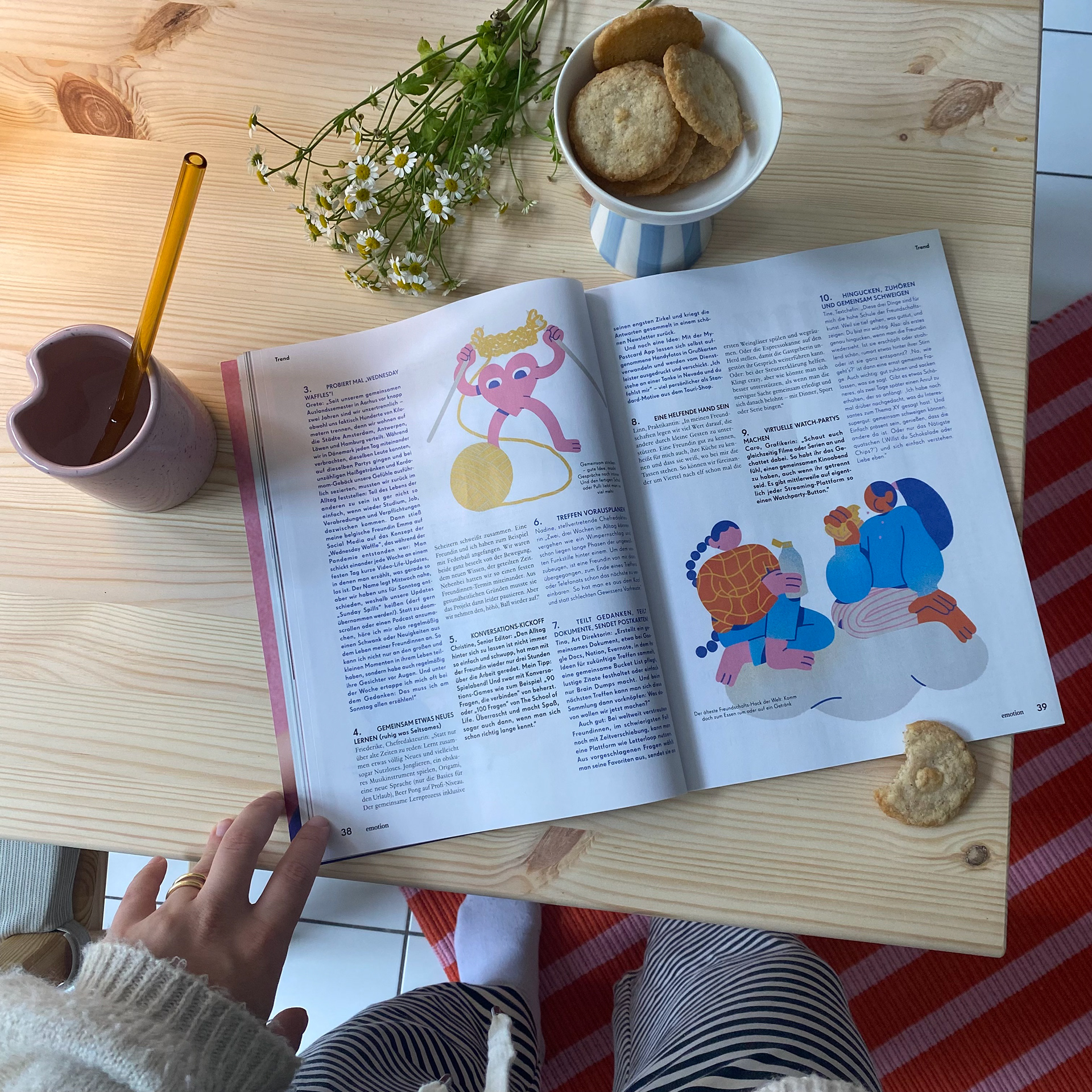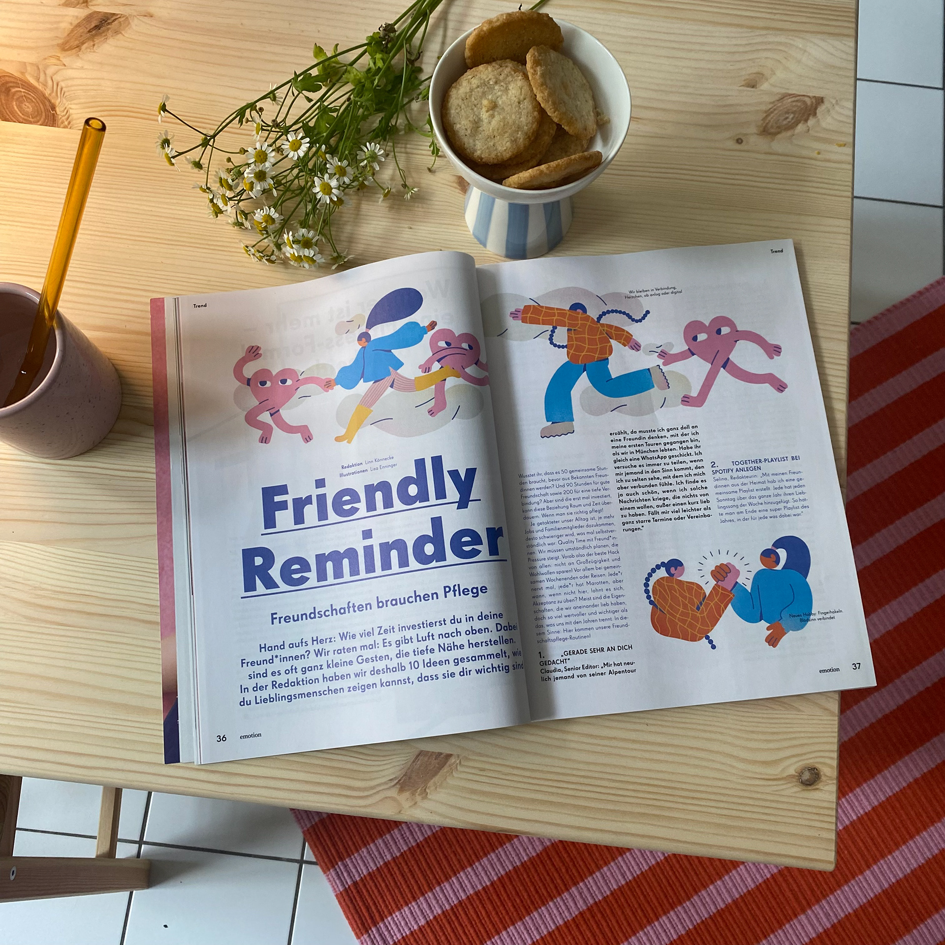 Illustrationen für das emotion Magazin zum Thema "Freundschaften" und was man tun kann um sie zu hegen und zu pflegen.